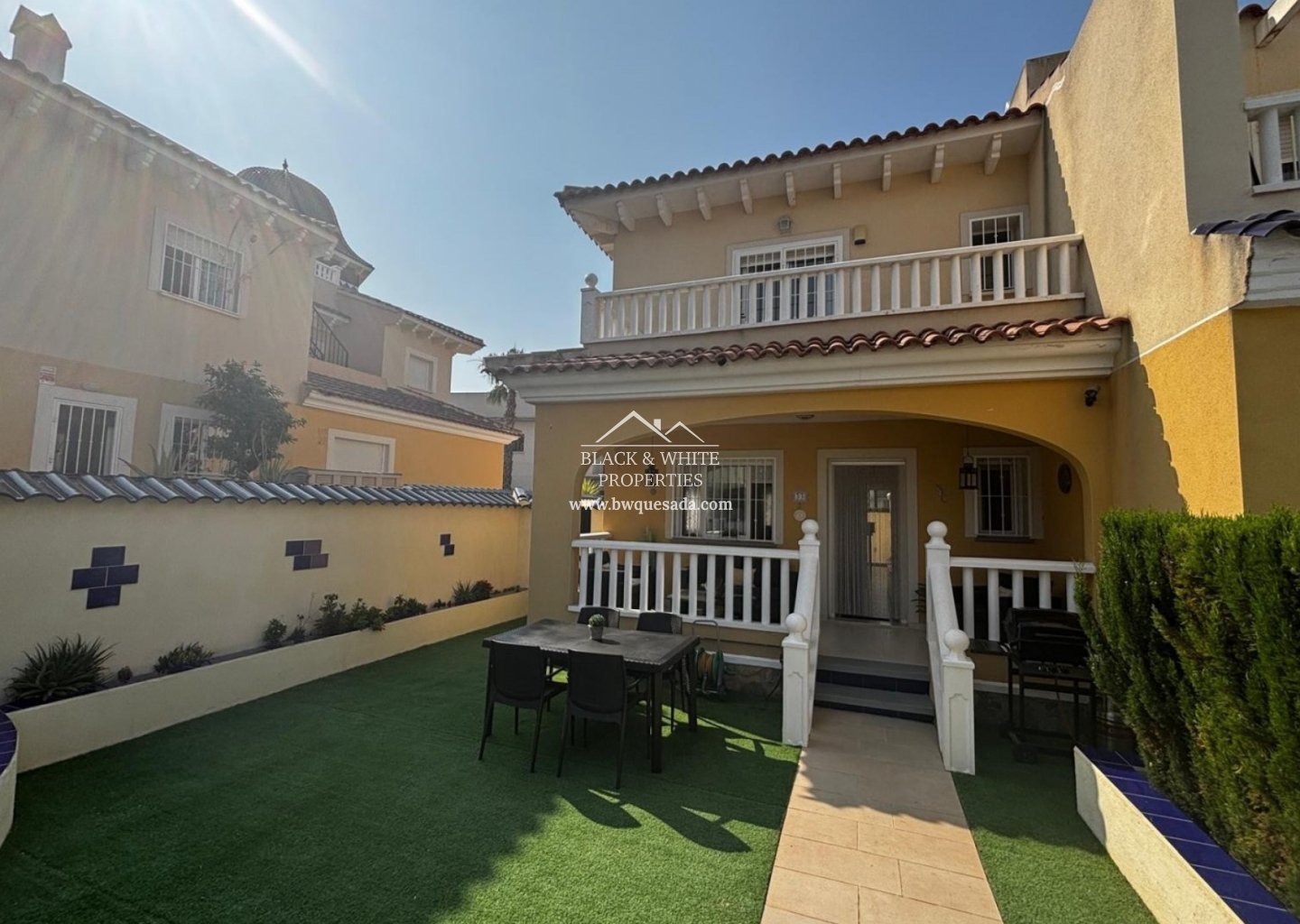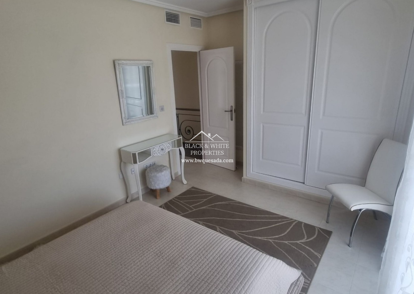 Prezentujemy ten 2- lub 3-pokojowy, w stylu Lola, szeregowiec położony w pożądanej dzielnicy Dona Pepa, w prywatnym osiedlu. Nieruchomość została odnowiona przy użyciu wysokiej jakości materiałów przez obecnych właścicieli. Ma narożną lokalizację, z ogrodem z przodu i z tyłu, a także bocznym wejściem. Zewnętrzne ściany zostały podniesione dla prywatności, a na zewnątrz dodano pomieszczenie gospodarcze z pralką i pomieszczeniem gospodarczym. Wewnątrz obecni właściciele zachowali salon-jadalnię. Jadalnię tę można łatwo przekształcić w trzecią sypialnię, jeśli zajdzie taka potrzeba. Meble, które są wliczone w cenę nieruchomości, są wyjątkowej jakości. Nieruchomość jest gotowa do zamieszkania, co pozwala cieszyć się nią od pierwszej chwili.