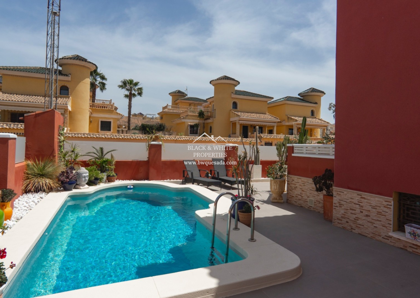 Wolnostojąca willa z 3 sypialniami położona w osiedlu Lo Crispin w Algorfa. Ten nieskazitelnie urządzony dom oferuje idealne połączenie luksusu, komfortu i życia na świeżym powietrzu. Nieruchomość położona na przestronnej działce oferuje prywatny basen, zadbane, łatwe w utrzymaniu ogrody i wiele przestrzeni do życia na świeżym powietrzu. Największą zaletą tego domu jest duży garaż z barem, częścią wypoczynkową i stołem bilardowym. Z tarasu na dachu, w którym znajduje się również jacuzzi, można podziwiać panoramiczne widoki na góry. Główna sypialnia ma łazienkę i garderobę, a dwie dodatkowe sypialnie mają wbudowane szafy i wspólną rodzinną łazienkę z prysznicem typu walk-in. Nieruchomość jest sprzedawana umeblowana i gotowa do zamieszkania.