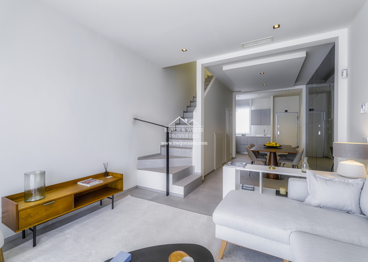 Pierwsza faza 13 nowoczesnych i dobrze zaprojektowanych kamienic w przyjemnej miejscowości Pilar de la Horadada zaprasza do wyboru między kamienicami z dwiema lub trzema sypialniami i dwiema łazienkami, rozmieszczonymi na dwóch piętrach i z dużymi tarasami, aby cieszyć się świeżym powietrzu.