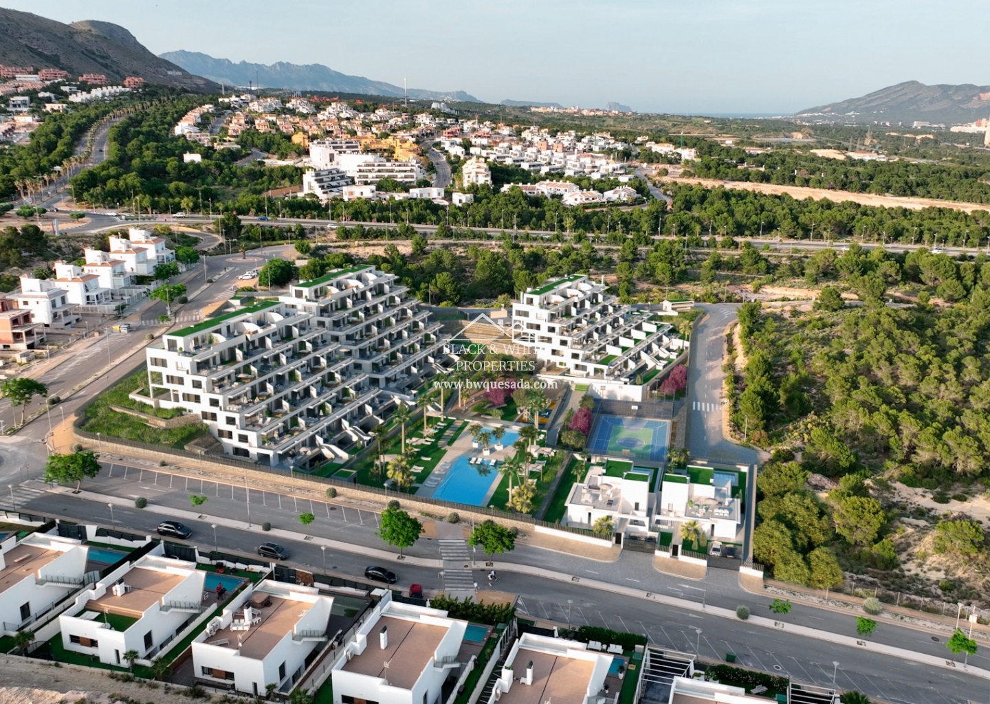 Feel the sea breeze and the blue of the Mediterranean from this beautiful penthouse with a private terrace and pre-installation for a Jacuzzi. With privileged views of the Benidorm skyline, this exclusive penthouse will take your quality of life to another level. Its intelligent design takes advantage of the staggered architecture of the urbanization so that you can fully enjoy the surroundings, the views and the light. A modern home equipped with the best technology applied to comfort: aerothermal air conditioning and thermal and acoustic insulation in all rooms and a kitchen equipped with electrical appliances. We have used, both outside and inside the house, highly energy-efficient materials so that you can enjoy the pleasure of feeling at home at any time of the year. And if living here is already a luxury, don't miss the common areas to which you will have access: swimming pools (one heated), gym, paddle tennis court, children's play area, coworking room, social club... And everything from the privacy and exclusivity of a small community of owners. Improve your quality of life and turn the blue of the Mediterranean into the color of your days!
