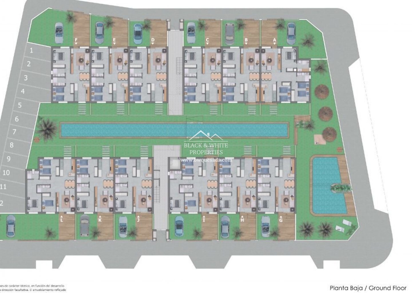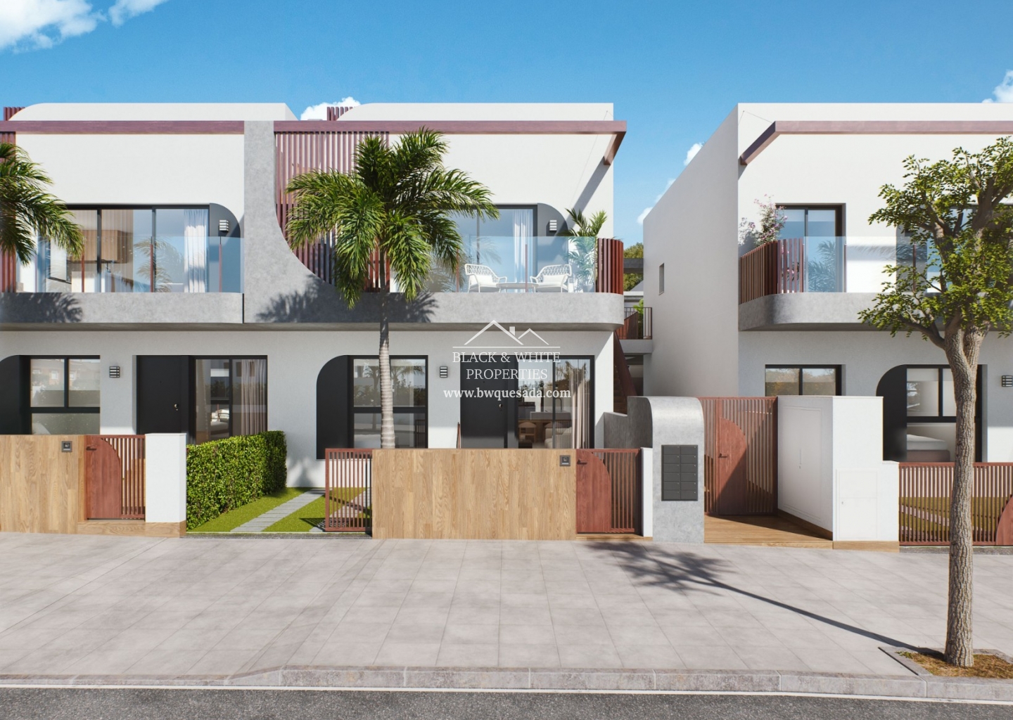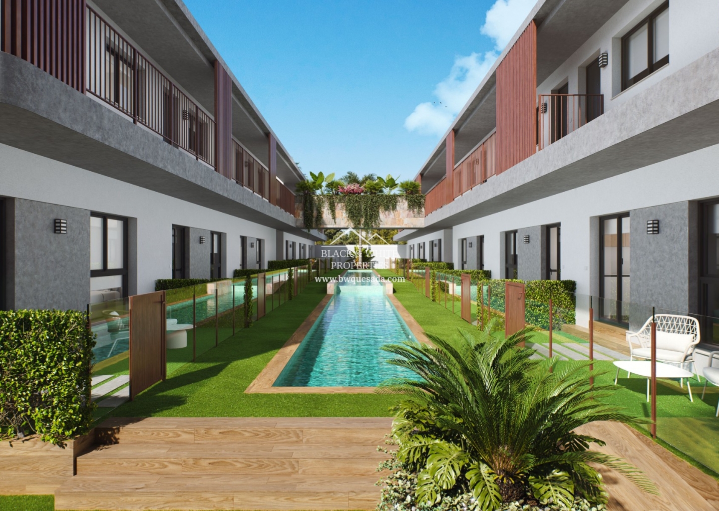 We present you this new project for sale, an exclusive residential area with 24 bungalows, designed and designed to live with maximum comfort in a privileged location surrounded by all kinds of services and just 3km from the sea. These new construction homes consist of 2 or 3 bedrooms to choose from, built on the ground floor and first floor with a private solarium. The residential has an excellent common area equipped with a swimming pool and the other for free use, therefore, this residential has 2 swimming pools. The residential has the shape of a completed block, thus having an optimal orientation that guarantees plenty of light and space for each and every one of its homes.