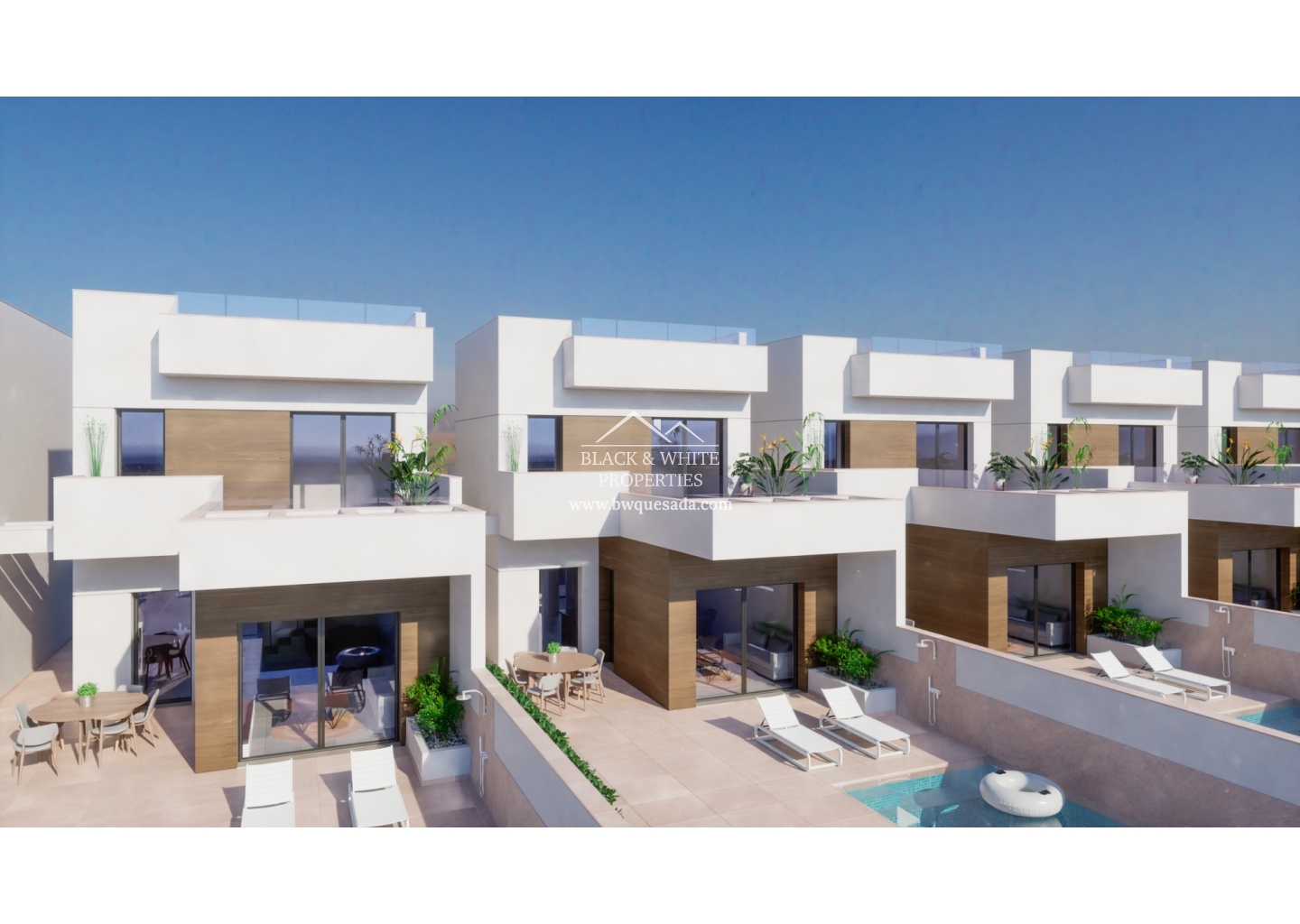 We are delighted to present you this new promotion that consists of 12 independent villas with 3 bedrooms, 3 bathrooms, a 7x3m private pool, terrace and large solarium included. This promotion is located in Los Montesinos, in La Herrera, it also has class A energy efficiency certification.