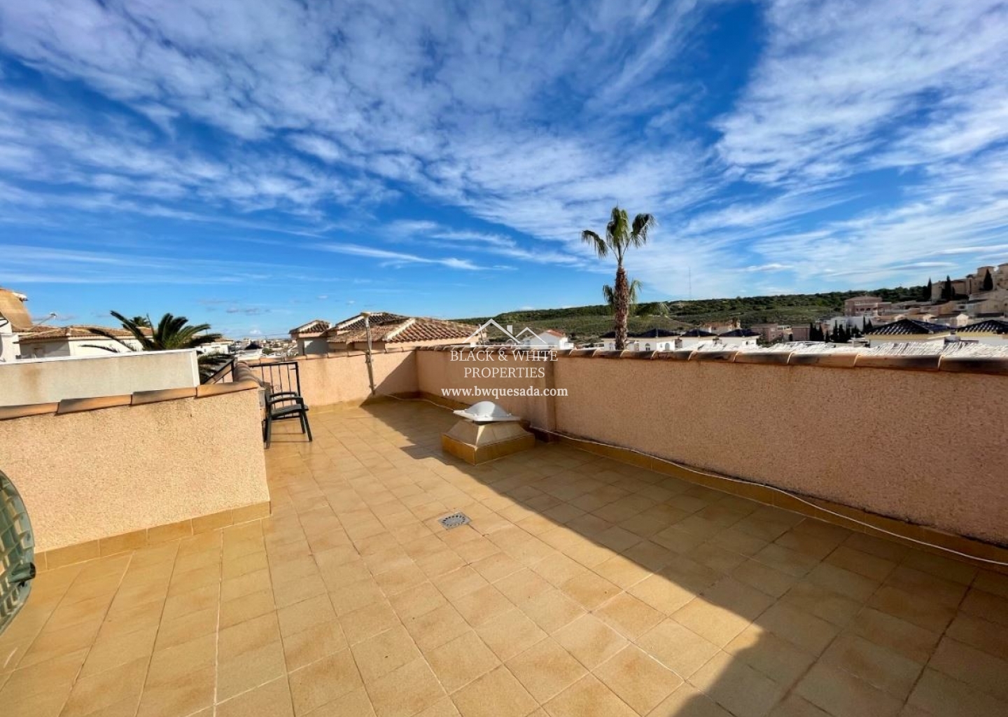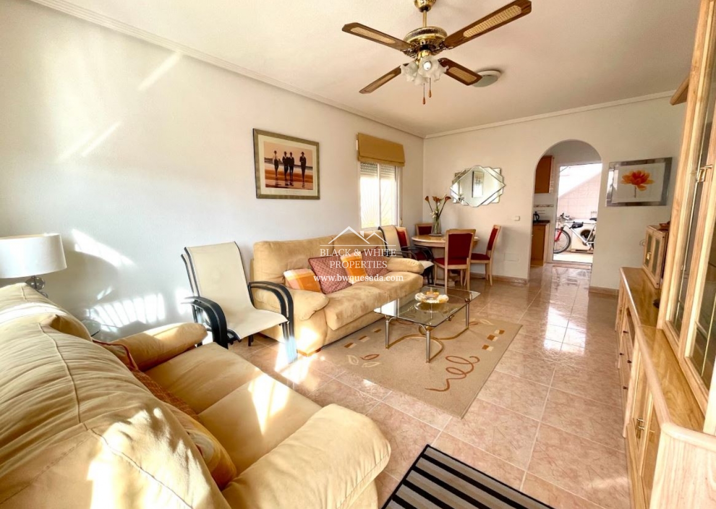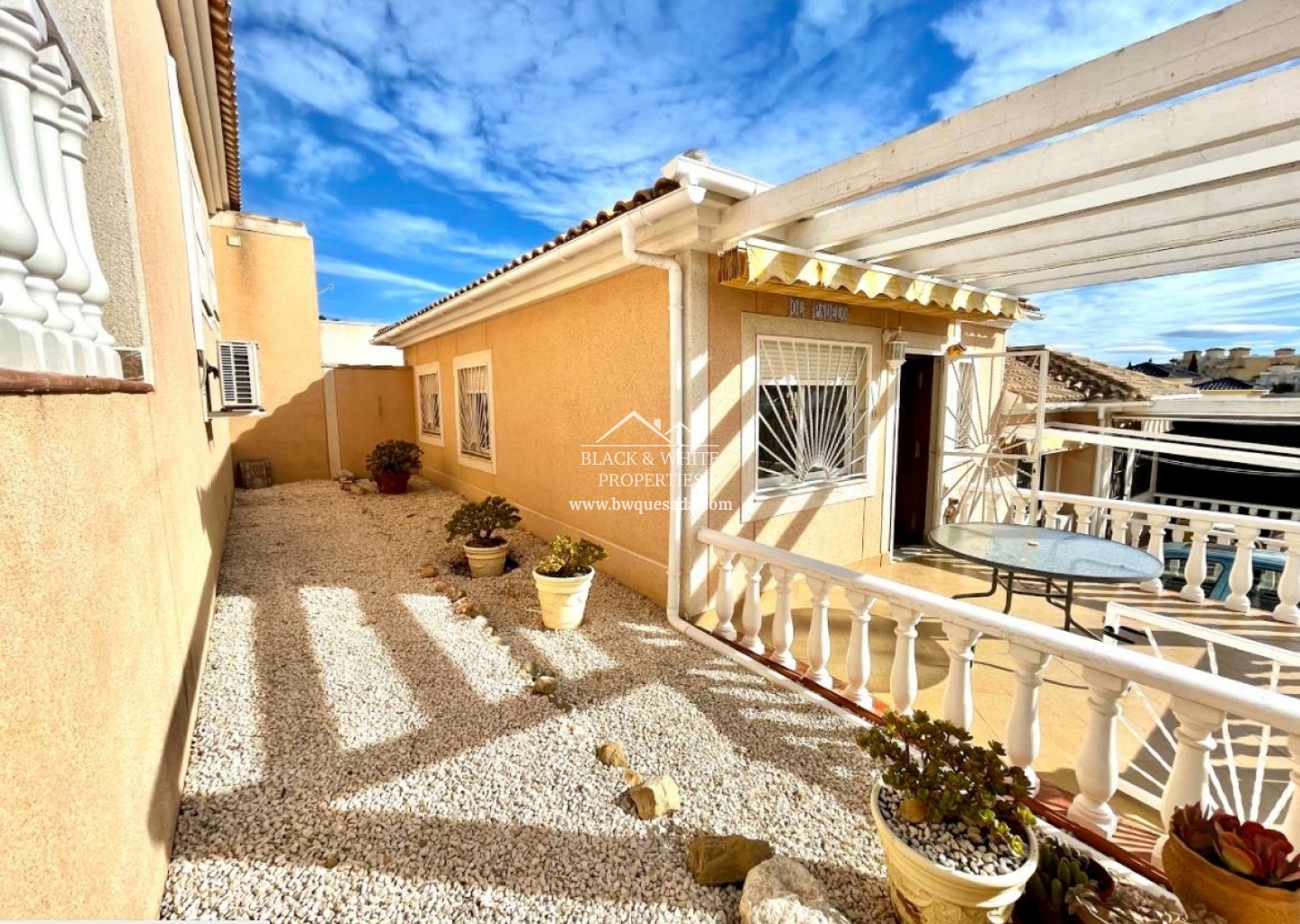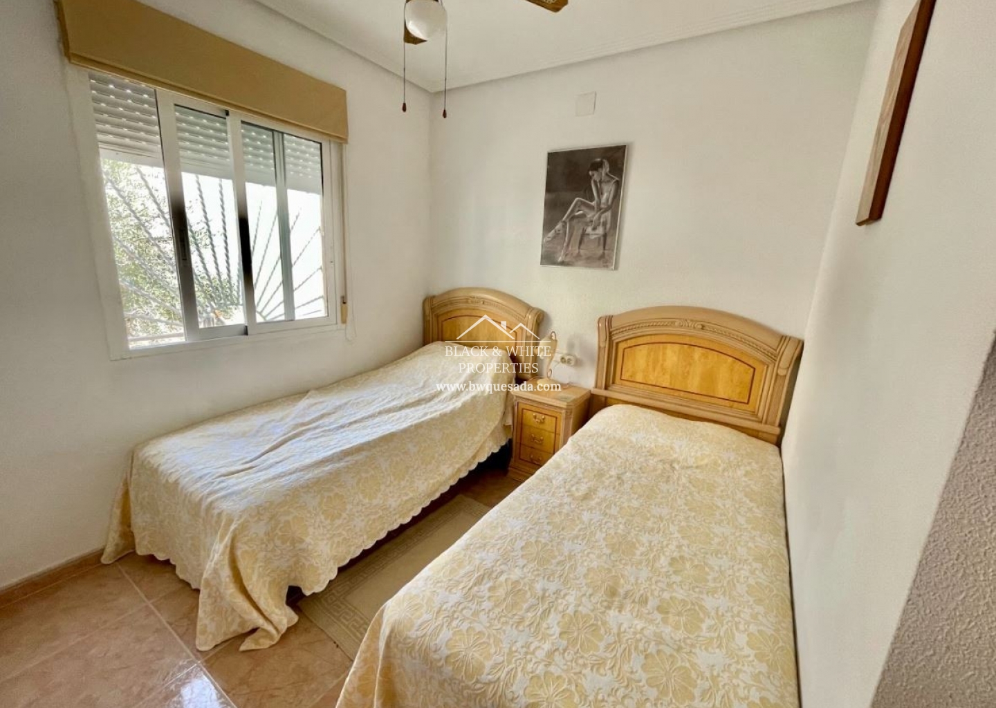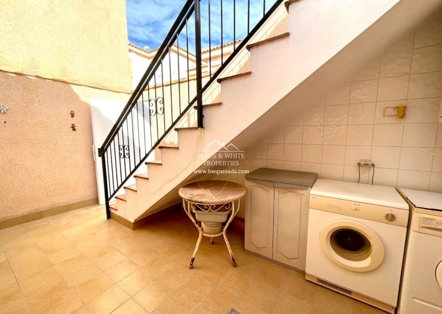 Semi-detached villa in a private complex that has 2 bedrooms and 1 bathroom, bright home in a quiet area near the golf course. It has a garden and solarium at the back of the house and a laundry area outside where the kitchen is located. Just a few steps away is the community pool.