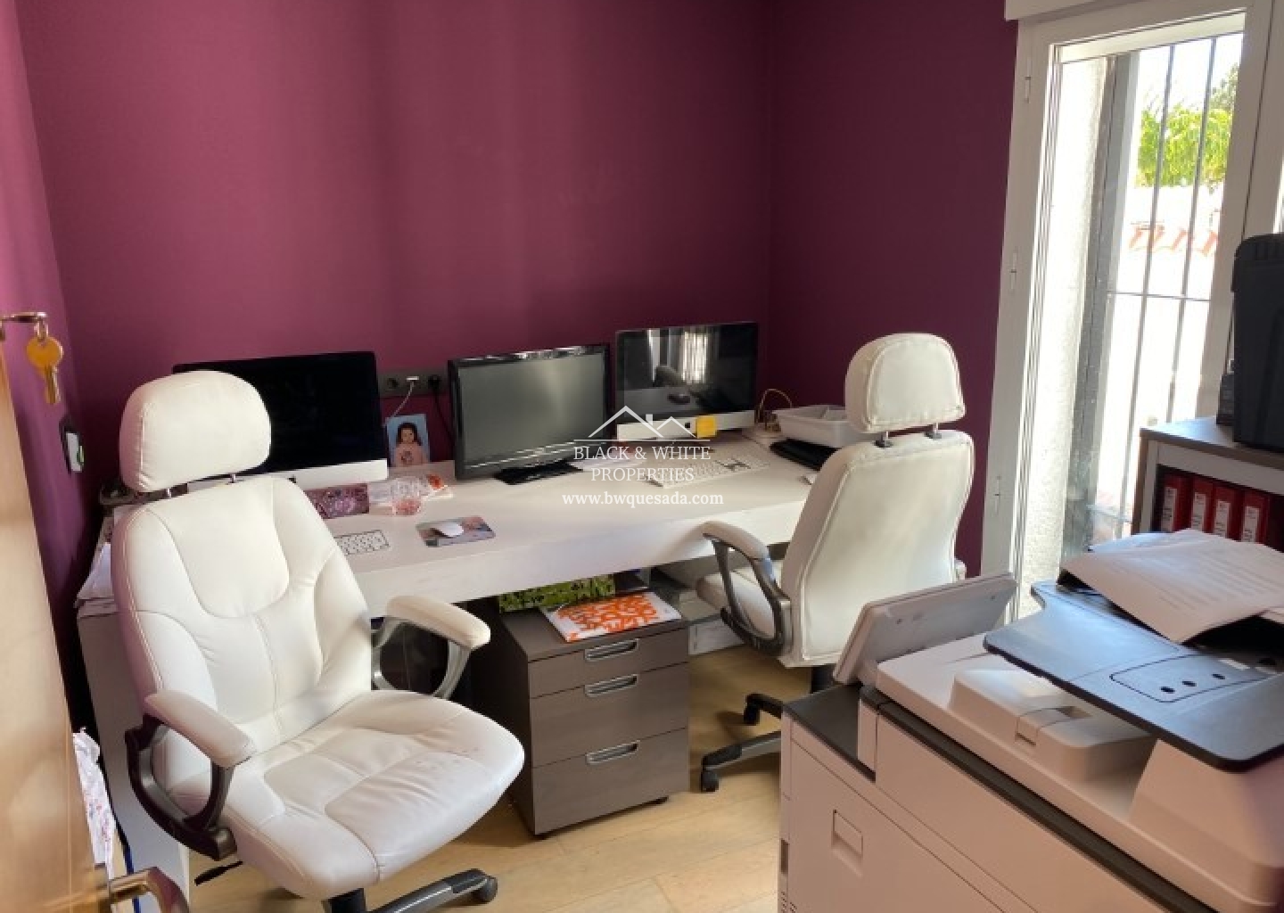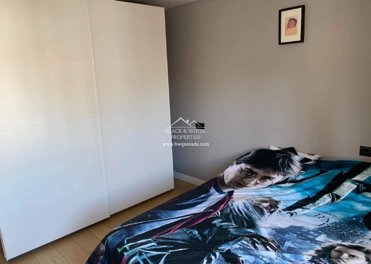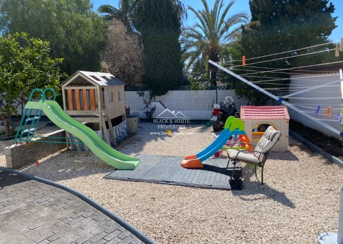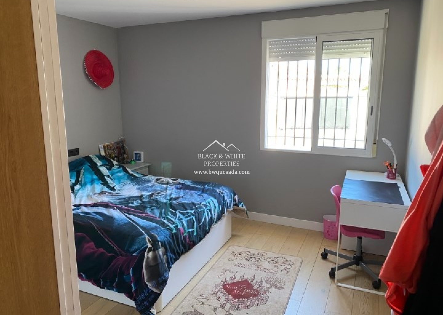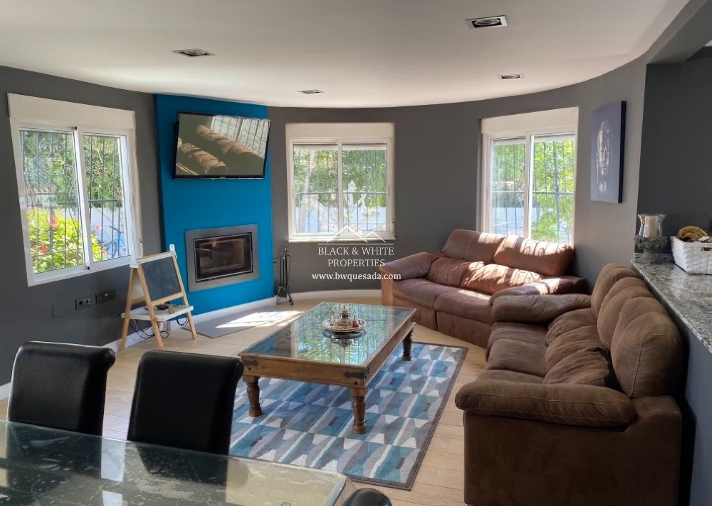 This large 3 bedroom, 2 bathroom villa sits perfectly on a 900 m2 plot of land in the heart of Quesada, within walking distance of a variety of amenities. The villa itself faces south-east and overlooks a private swimming pool, complete with jacuzzi, as well as a full outside summer kitchen and bar area. There is outside parking space for several cars. There are also 2 solariums that offer beautiful views of the lakes. Inside it has been completely renovated and modernised, and offers extras such as ducted air conditioning throughout.