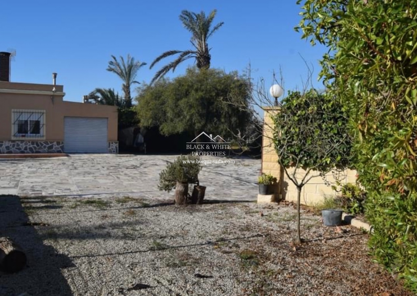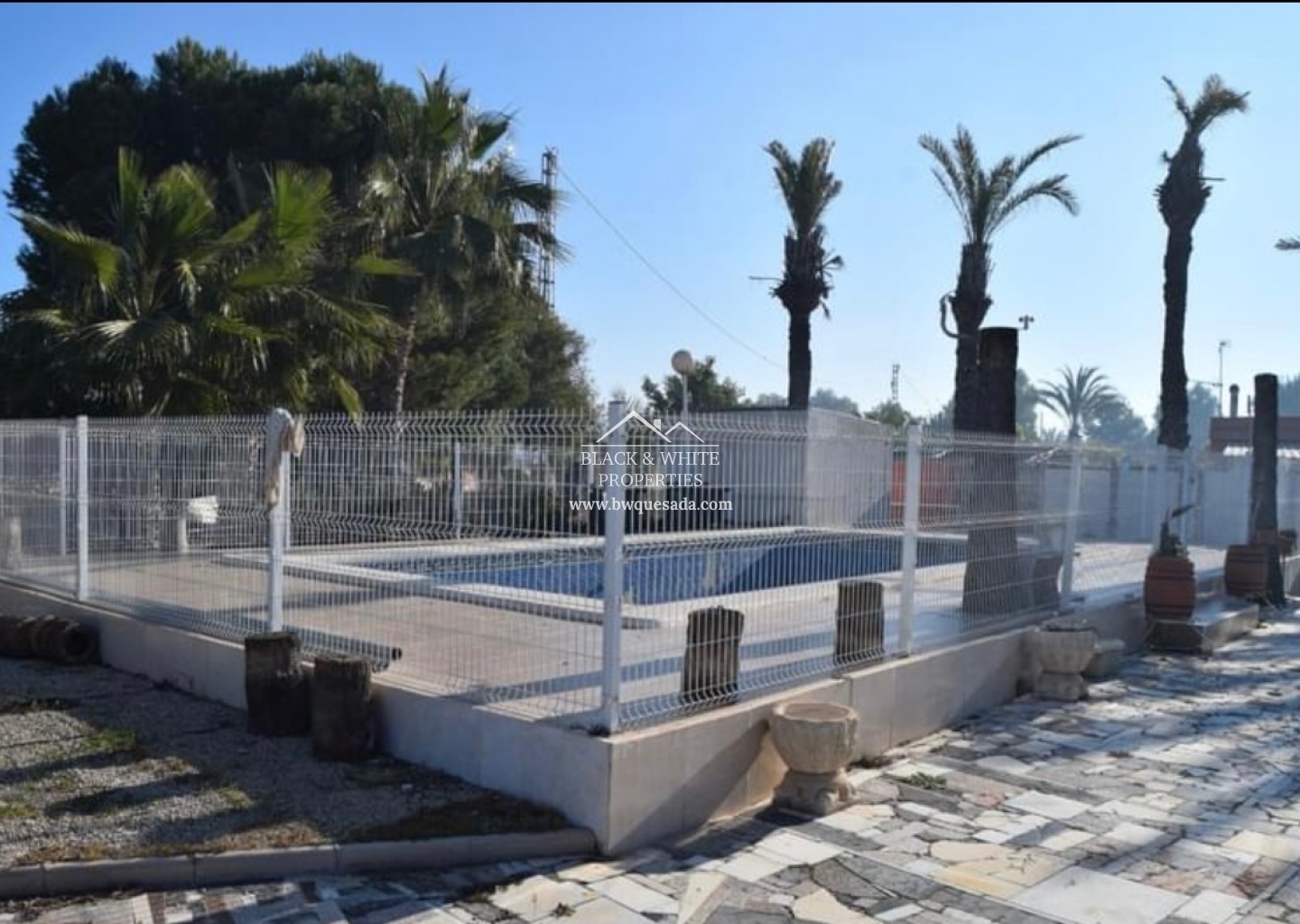 Villa for sale in Elche just 5 minutes from all services, shops, supermarkets, schools, restaurant, doctor. The house has 170m2 distributed in 3 bedrooms, 2 bathrooms, one outside next to the pool. Living room with fireplace, garage for 2 cars, 2 barbecues, swimming pool with treatment plant and auxiliary bathroom, large covered porch and automatic entrance door. The plot is 2,400m2 with an orchard, gardens, fruit trees and a children's area with swings. The beaches of Santa Pola are just 5 minutes away and the airport 15 minutes away.