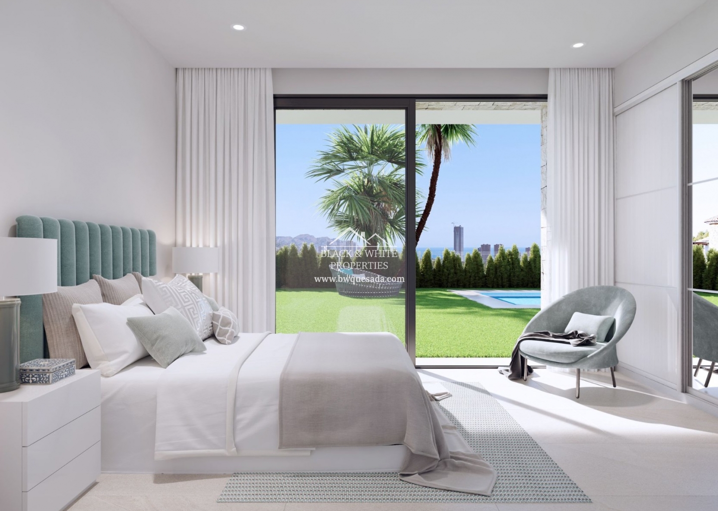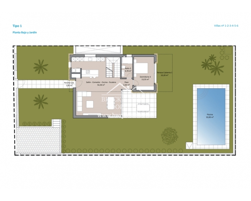 We present this wonderful promotion which consists of 15 independent villas, with 3 bedrooms and bathrooms, living room - dining room and integrated kitchen, and basement (in some of them). All of them have large plots with a private pool, and a garden with natural grass, lighting and automatic irrigation. They will be something that stands out for its design, quality and comfort... in the best area, with unbeatable views of the bay of Benidorm and the Mediterranean Sea, and just a few minutes from its beaches. The villas have been designed by architects and engineers seeking optimal energy savings by taking advantage of natural resources. They will be built with materials and equipment of the highest quality from the best brands on the market. Brands such as Florim, Villeroy & Boch, Hansgrohe, Bosch, BTicino, Cortizo or Blum. This model is TYPE 1 with prices from €1,065,000. If you are interested, do not hesitate to contact us.