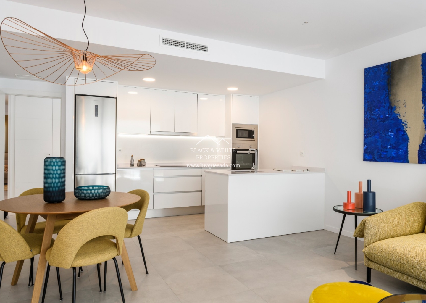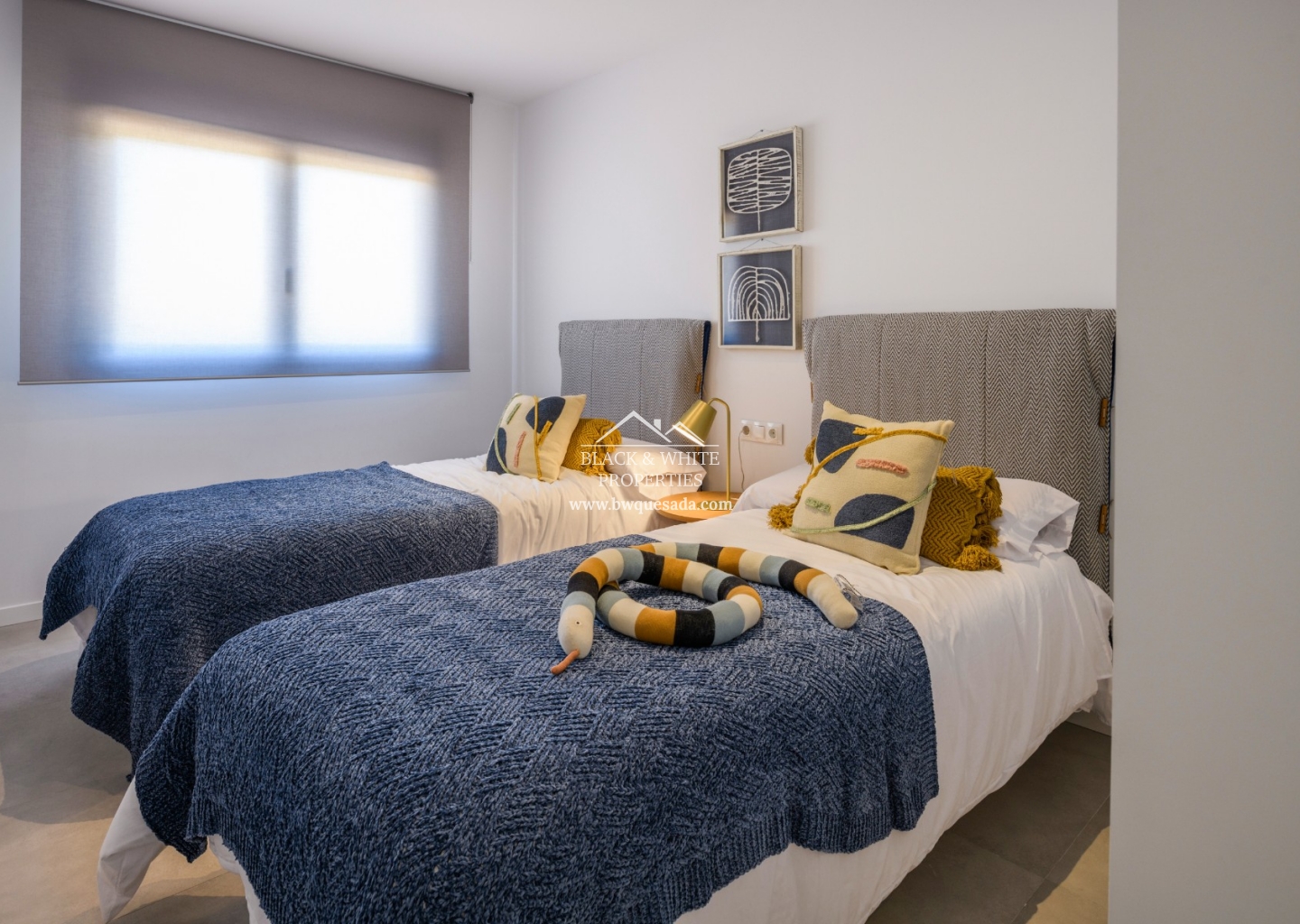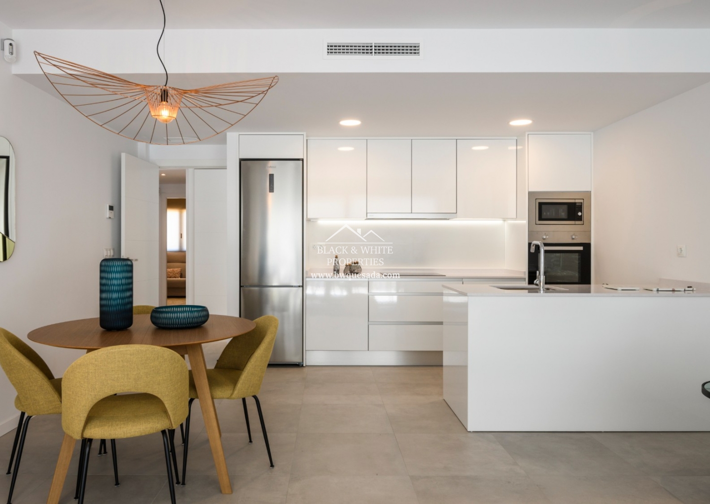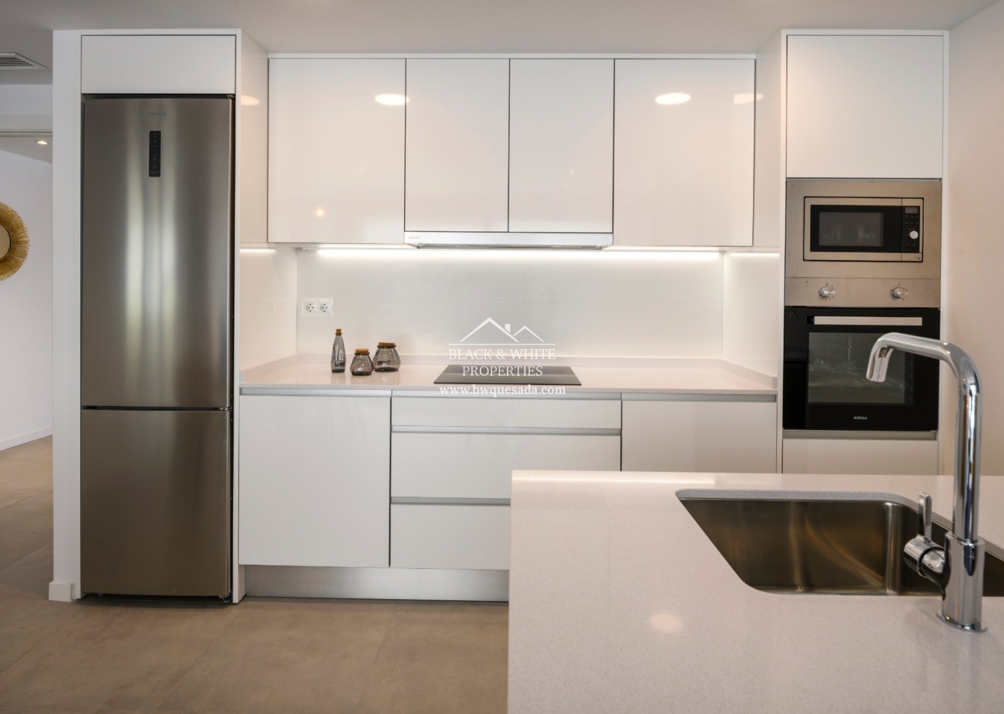 Discover this exclusive residential complex located at the highest point of Campoamor, a privileged setting that seamlessly blends nature and the sea. Designed to offer an exceptional lifestyle, its character shines through its impressive communal areas, featuring gardens that merge with the natural surroundings, soothing fountains, crystal-clear waterfalls, and decorative ponds.