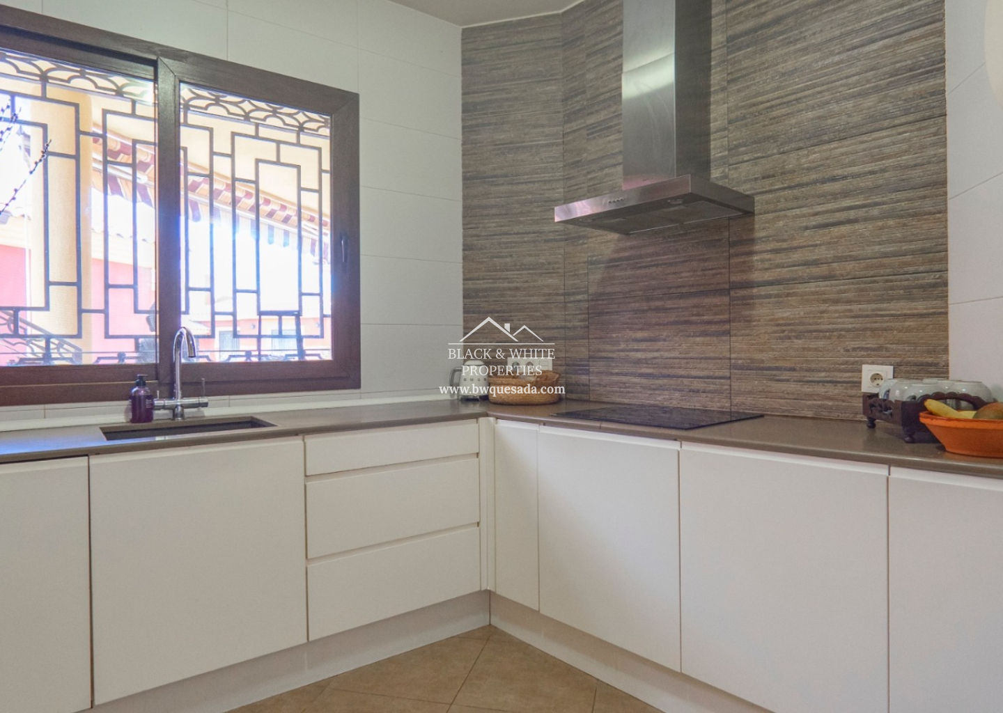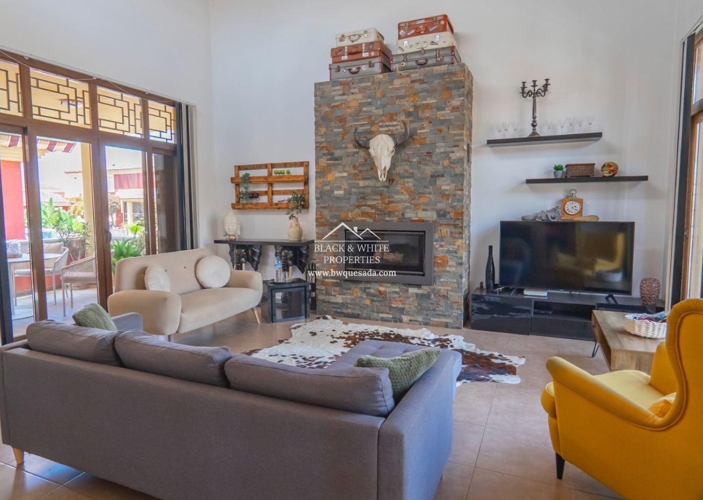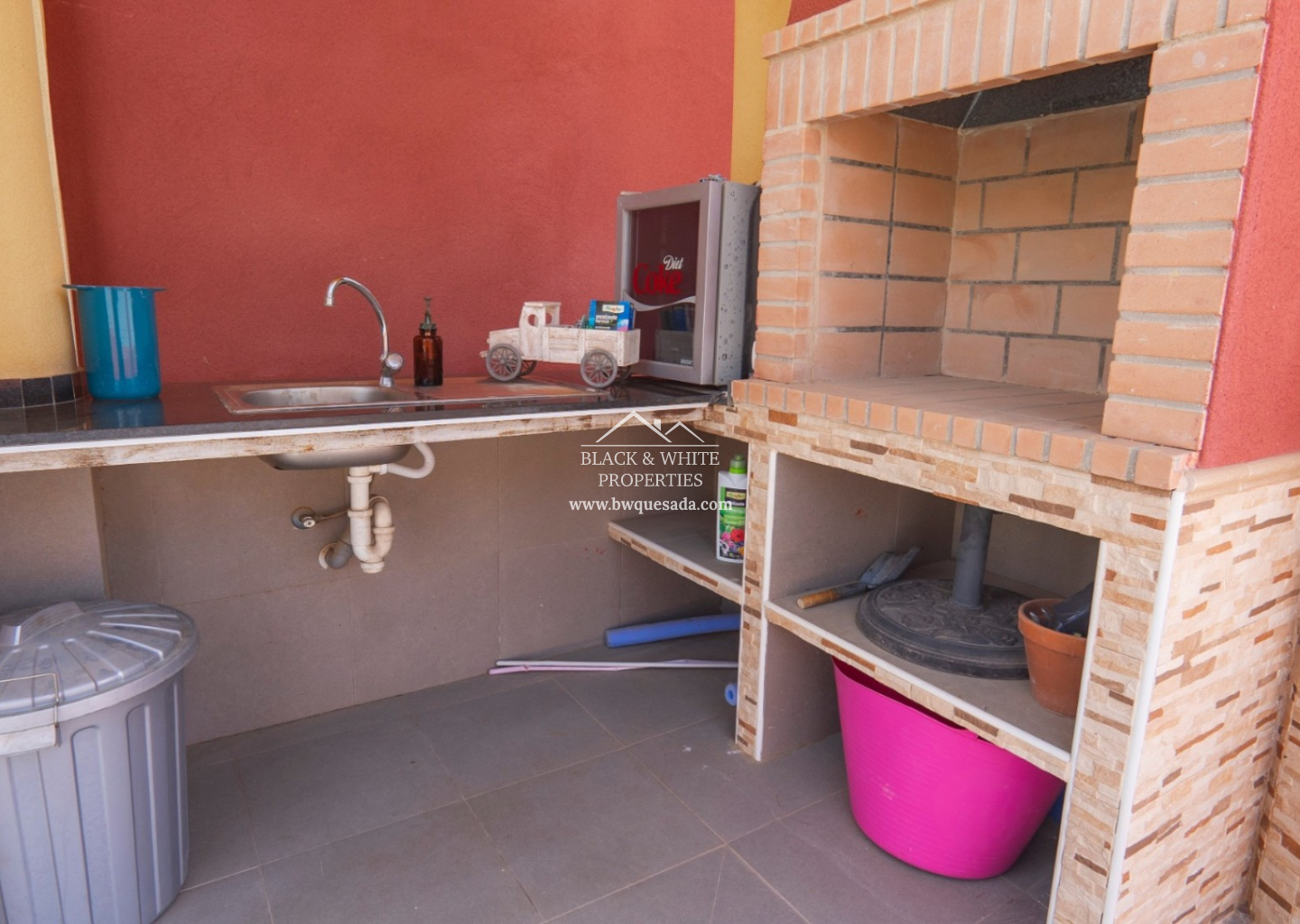 Detached 3-bedroom villa located in the Lo Crispin development in Algorfa. This immaculately presented home offers the perfect combination of luxury, comfort, and outdoor living. Situated on a spacious plot, the property boasts a private pool, manicured, low-maintenance gardens, and multiple outdoor living areas. A highlight of this home is the large garage, which features a bar, lounge area, and pool table. Enjoy panoramic mountain views from the rooftop solarium, which also features a Jacuzzi. The master bedroom has an ensuite bathroom and dressing room, while the two additional bedrooms feature built-in wardrobes and share a family bathroom with a walk-in shower. This property is being sold furnished and is ready to move into.