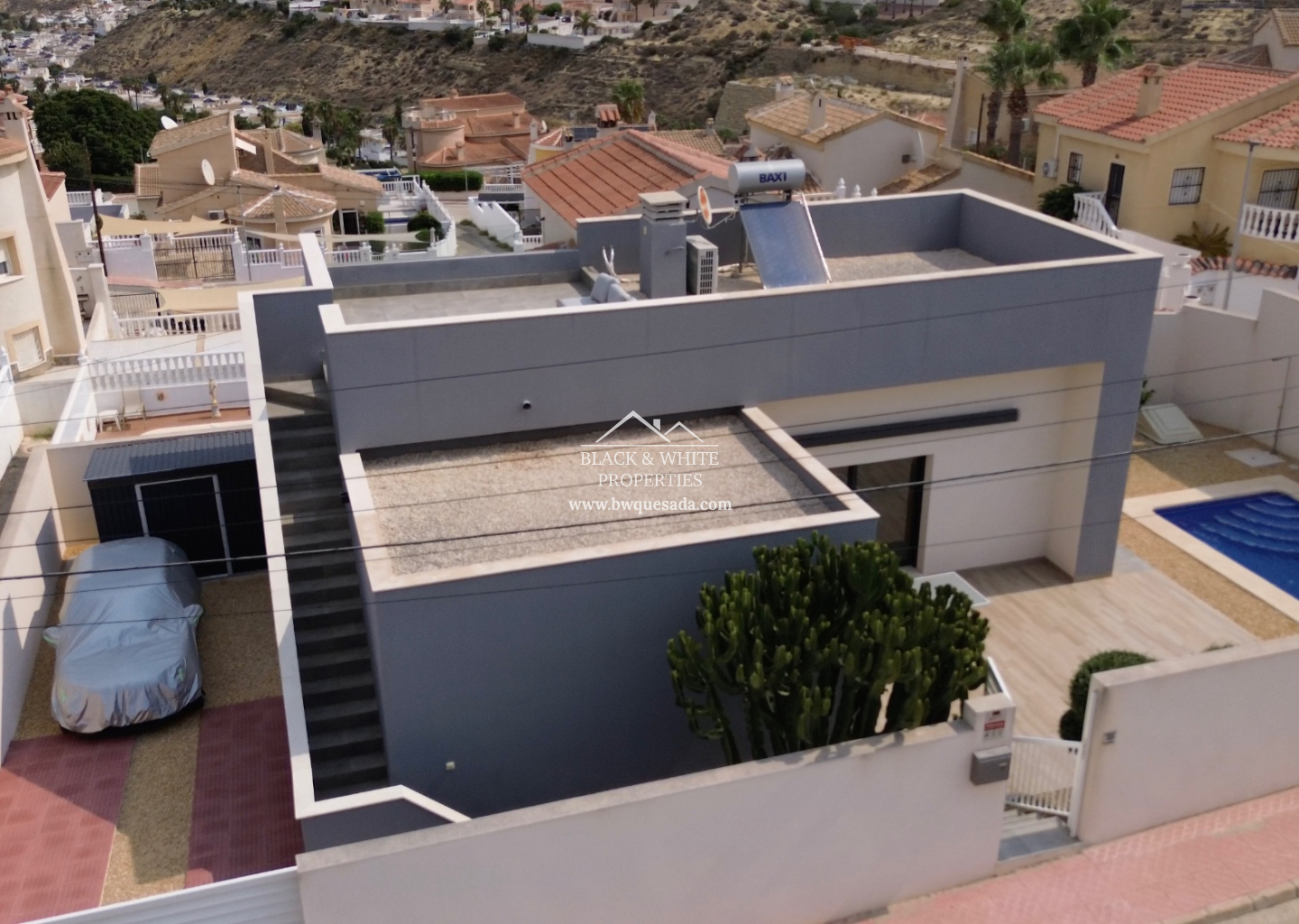 The villa combines modern design with practical elegance, creating bright and welcoming interiors that flow naturally into outdoor areas. Enjoy a private pool, several patios, and a rooftop solarium boasting panoramic views over the surrounding area and La Marquesa Golf Course. Whether as a permanent home, holiday retreat, or investment opportunity, this property offers the perfect blend of lifestyle and functionality.