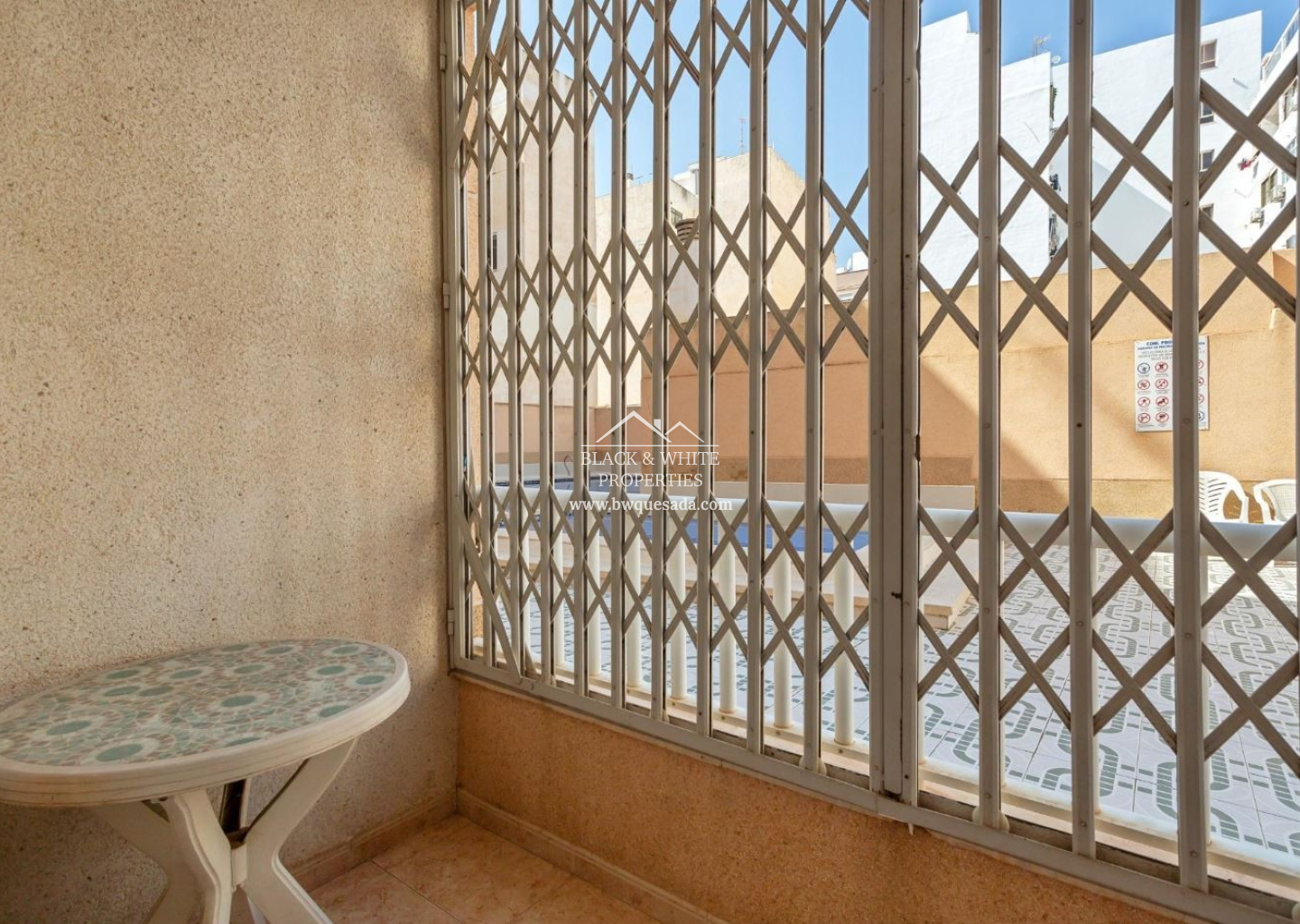 The property is located 850 metres from Acequión Beach, a 5-minute walk from the Town Hall Square, and 10 minutes from the Promenade and the new leisure marina. It is surrounded by all services, shops, restaurants, and public transport. The property features two bright bedrooms, a full bathroom, an independent and spacious kitchen, an interior patio, and a communal swimming pool. It is in very good condition.
