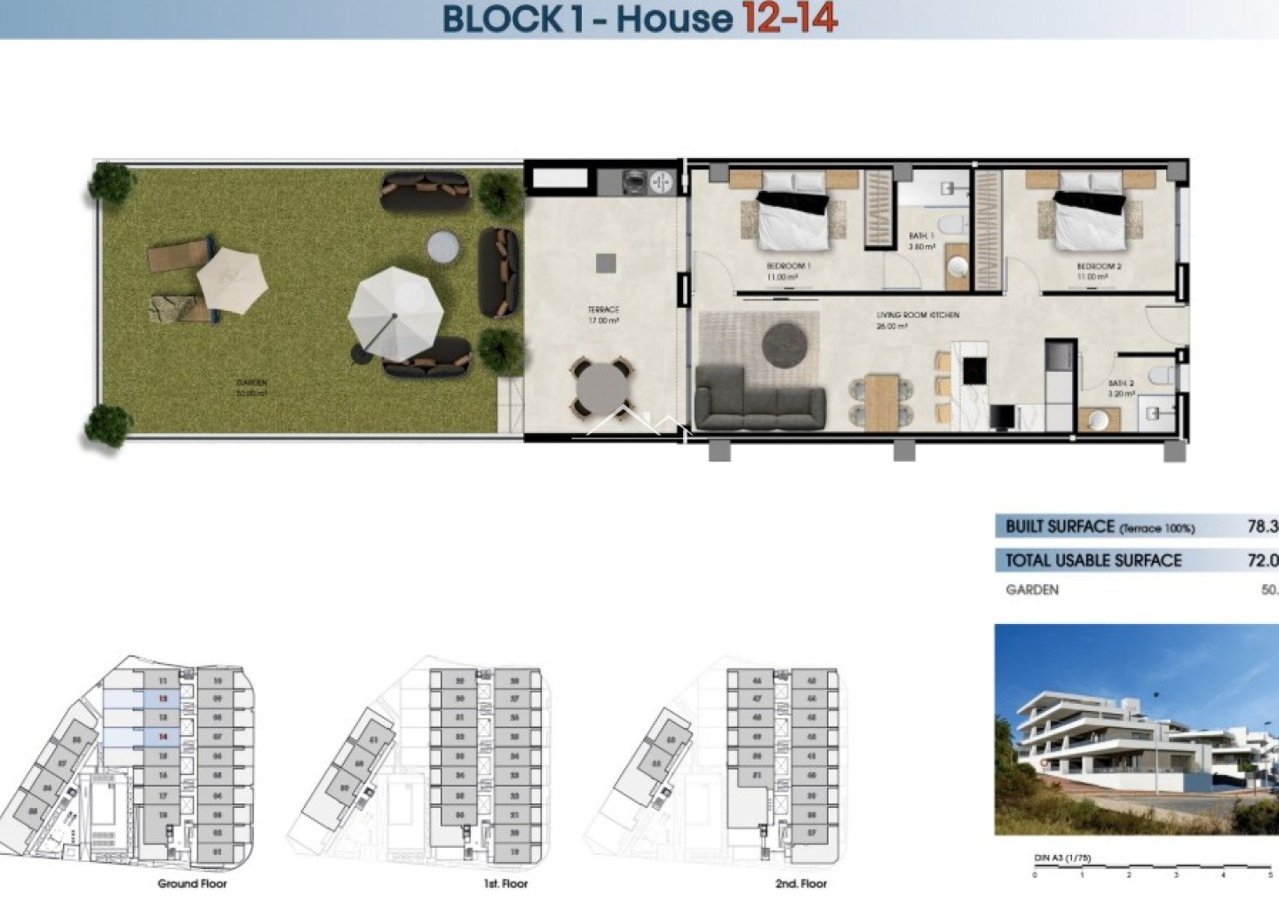 We are pleased to present this fantastic residential development located in La Marina, in El Pinet, a privileged enclave next to the dunes, the pine forest and the beach, where you can enjoy peace and a natural environment without giving up the proximity to services and leisure. This development consists of 2-bedroom apartments with large terraces, a communal pool, private garage and a large storage room. The homes are delivered fully furnished, with appliances and lighting included. All homes include an underground parking space and a storage room. Ground-floor units come with a garden, while second-floor units include a solarium.