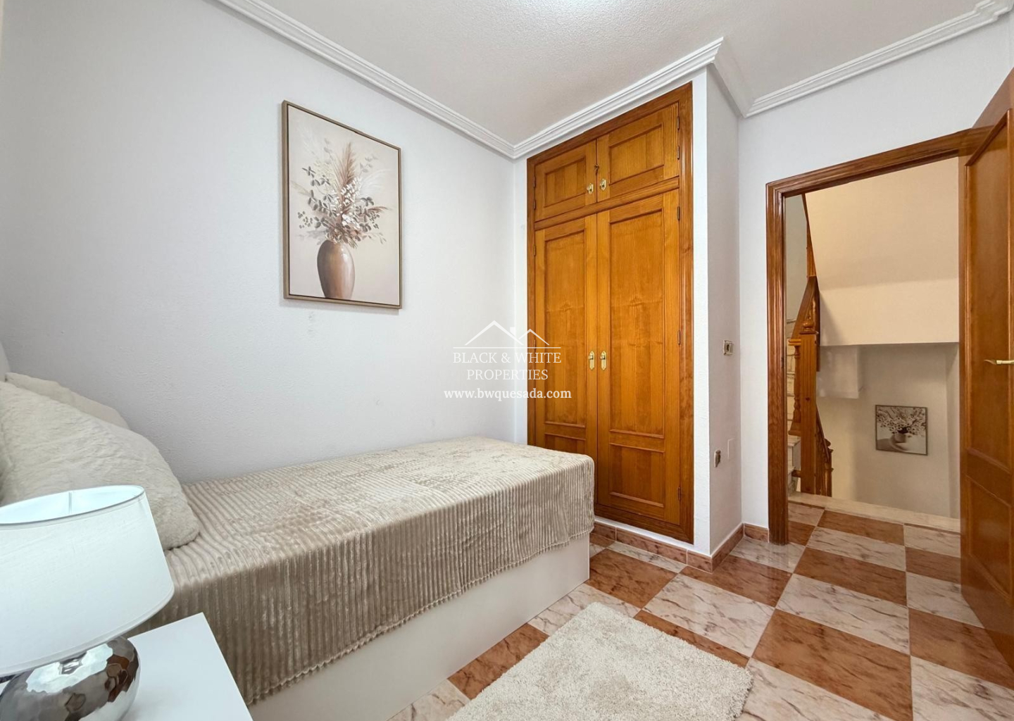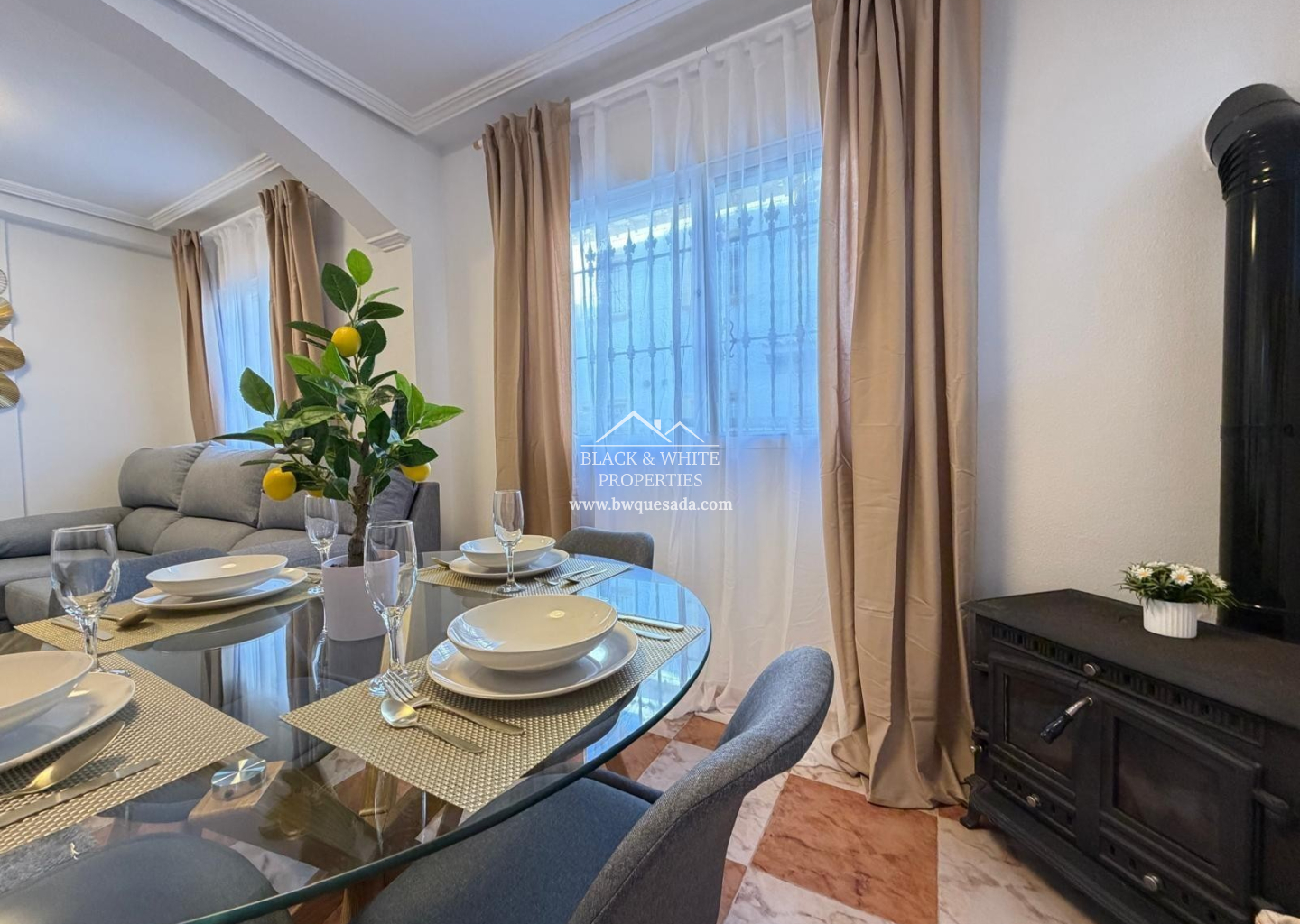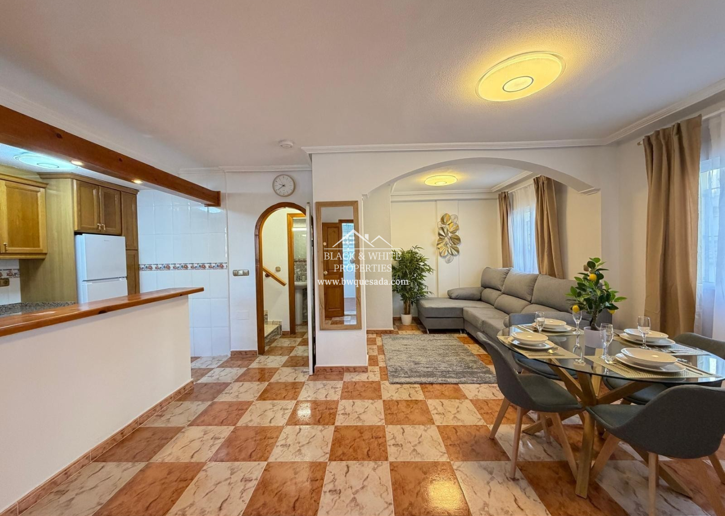 Cozy townhouse for sale in Orihuela Costa, in the Las Filipinas area, located in a quiet and well-maintained residential complex with a communal swimming pool and green areas. The property is in very good condition after an aesthetic renovation and is ready to move into. From the terrace and the solarium you can enjoy magnificent open views of the mountains and the sea. The property is sold furnished and equipped with appliances, as shown in the photographs.