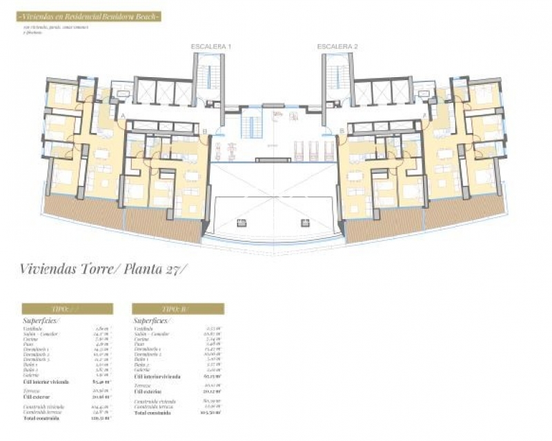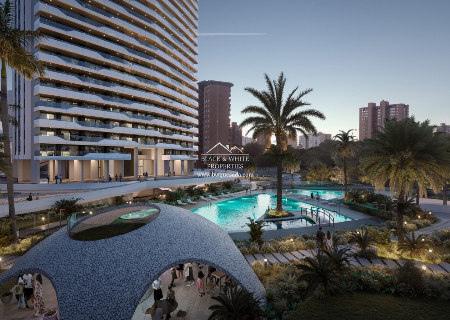 It has 196 homes with 2, 3 and 4 bedrooms in a glass tower with spacious terraces with views, ideal for enjoying the fresh air and the fantastic climate of the Benidorm coast. It is an ideal residential for all types of public. Not only because of the numerous health, wellness and entertainment benefits offered by its facilities. But also because of its location in Benidorm, the city that never sleeps. The urbanization has a swimming pool for adults, a swimming pool for the little ones, a spa, jacuzzis, chillout, a children's play area, two paddle tennis courts, etc.